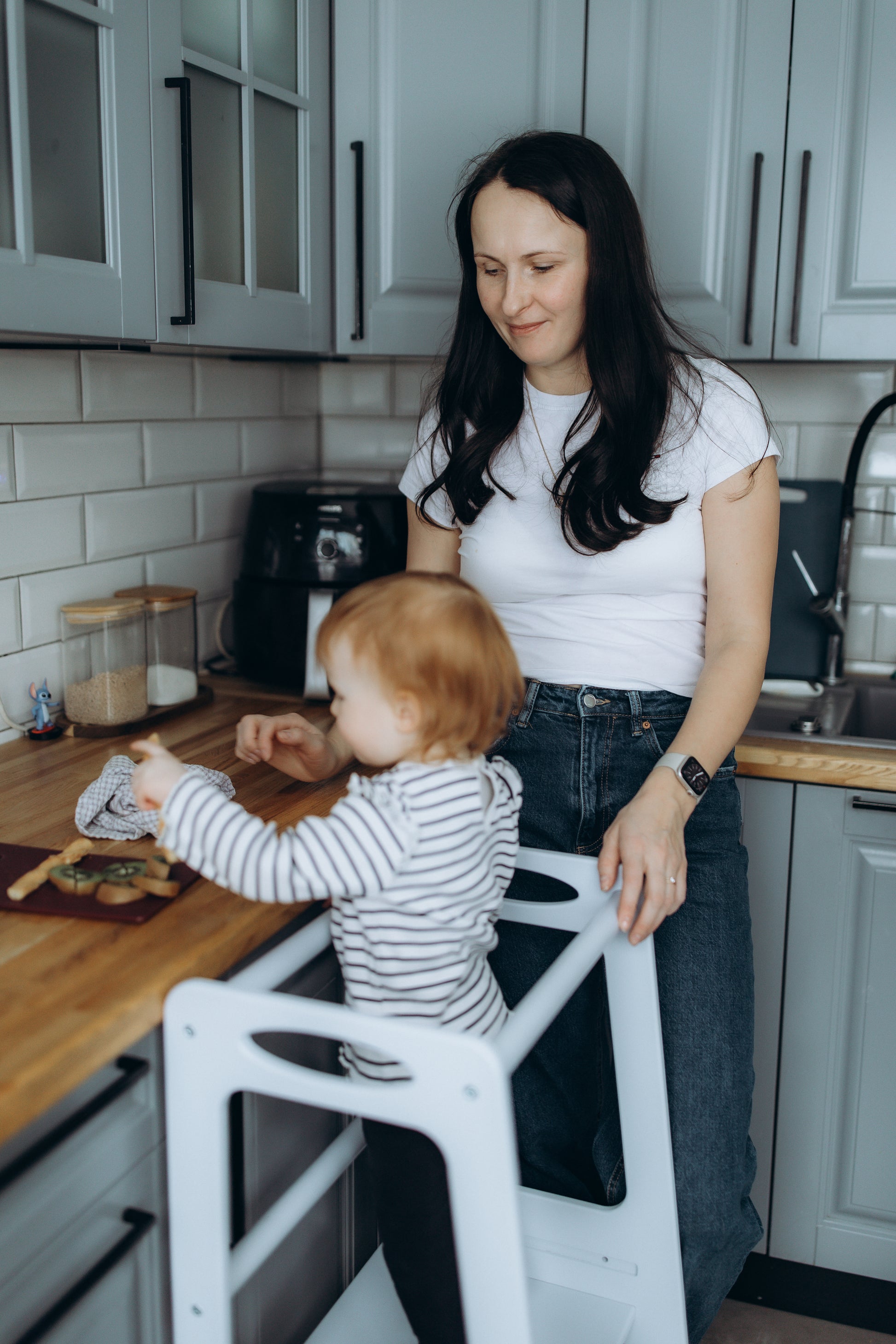 Unser Küchenhelfer-Turm wird Ihrem Kind Unabhängigkeit beibringen und täglich mehr Selbstständigkeit lehren. Durch Verwendung dieses Produktes entwickelt das Kind Vertrauen an sich selbst und seine Fähigkeiten, er lernt Unabhängigkeit und seine Grenzen kennen, wie viel es selbst machen kann. Der Küchenhelfer-Turm ist ein ausgezeichneter Helfer für die Eltern, um das Kind in die alltäglichen Aktivitäten einzubeziehen. Das Kind wird selber lernen, wie man sich am Waschbecken die Zähne putzt, wie man den Eltern täglich beim Geschirrspülen und anderen Arbeiten im Haus hilft. Der Küchenhelfer-Turm ist mit Holzstielen – Barrieren auf allen Seiten ausgestattet, damit das Kind darauf sicher stehen und arbeiten kann.